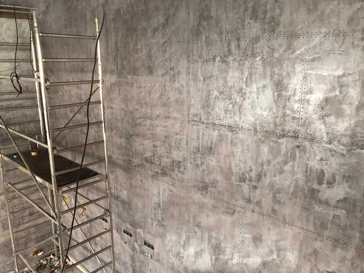 restaurant décoration murs style industriel murs métal et riveté en travaux