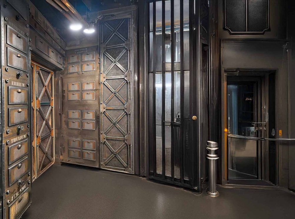 Des murs découpés en plaques rivetées et boulonnées avec des intervalles réguliers et millimétrés sur toute la surface.