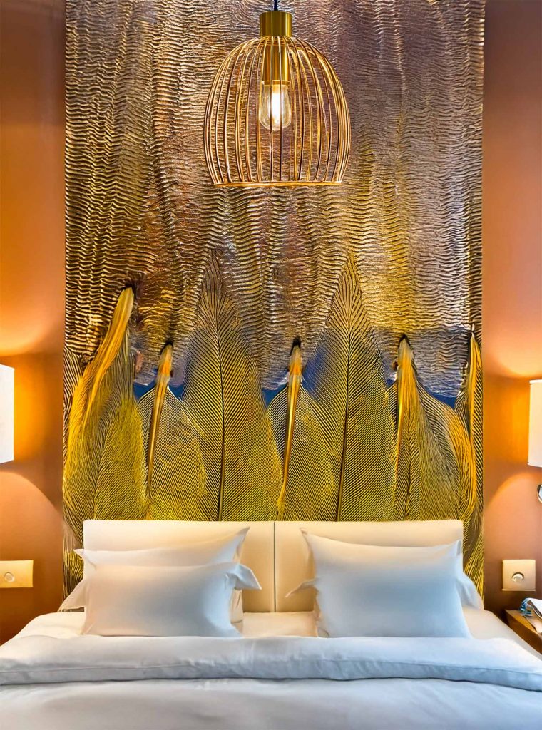 Enfin, dans des lofts ou des maisons d’exception, l’artiste peut créer des pièces uniques : une tête de lit en acier rouillé, un mur-feature en cuivre patiné, une cheminée habillée de plaques boulonnées… Les possibilités sont infinies.