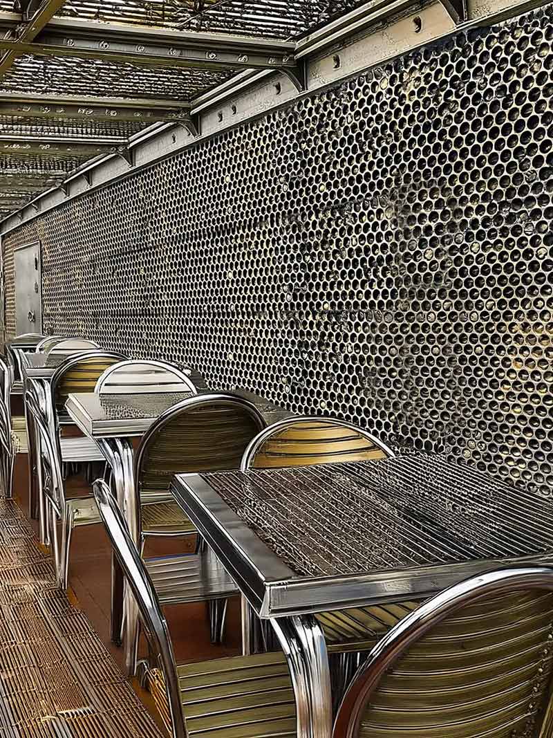 resto-nid-dabeille Publié le 16 mars 2025 à 800 × 1067 dans Accueil Faux mur métallisé nid d’abeille avec ses défauts d’usure et aussi ses reliefs, réalisable tous coloris