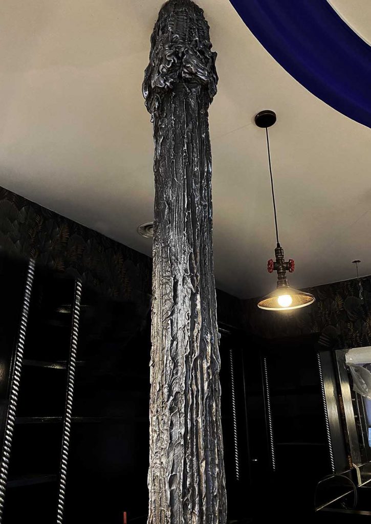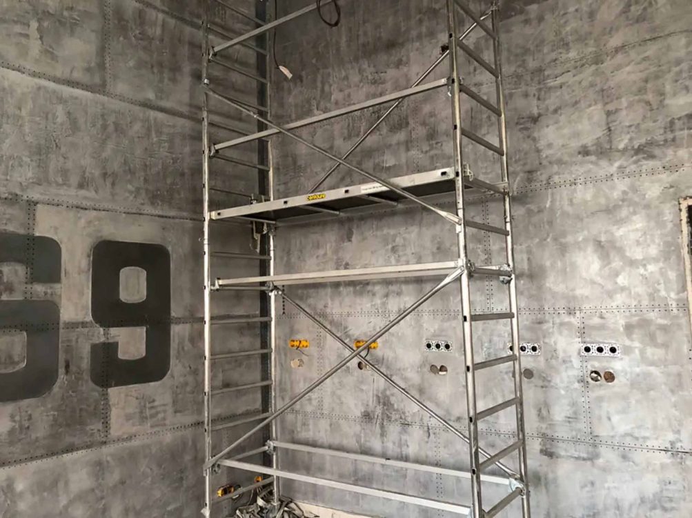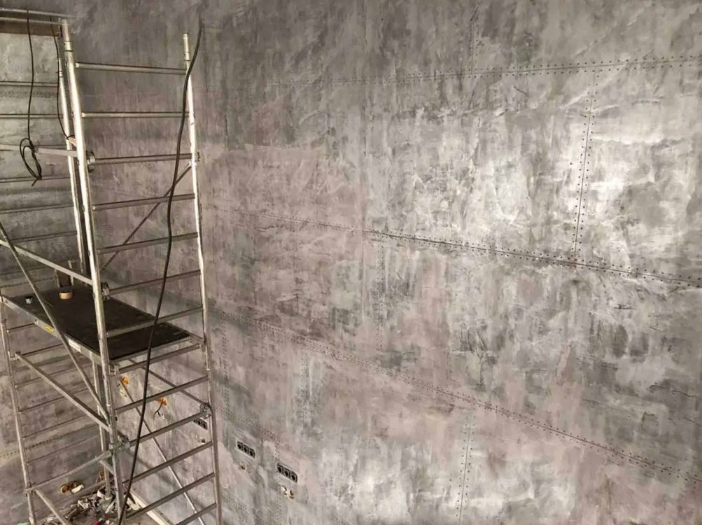 Un décorateur style industriel pour aider ainsi à la mise en place de murs métal en trompe l’oeil.