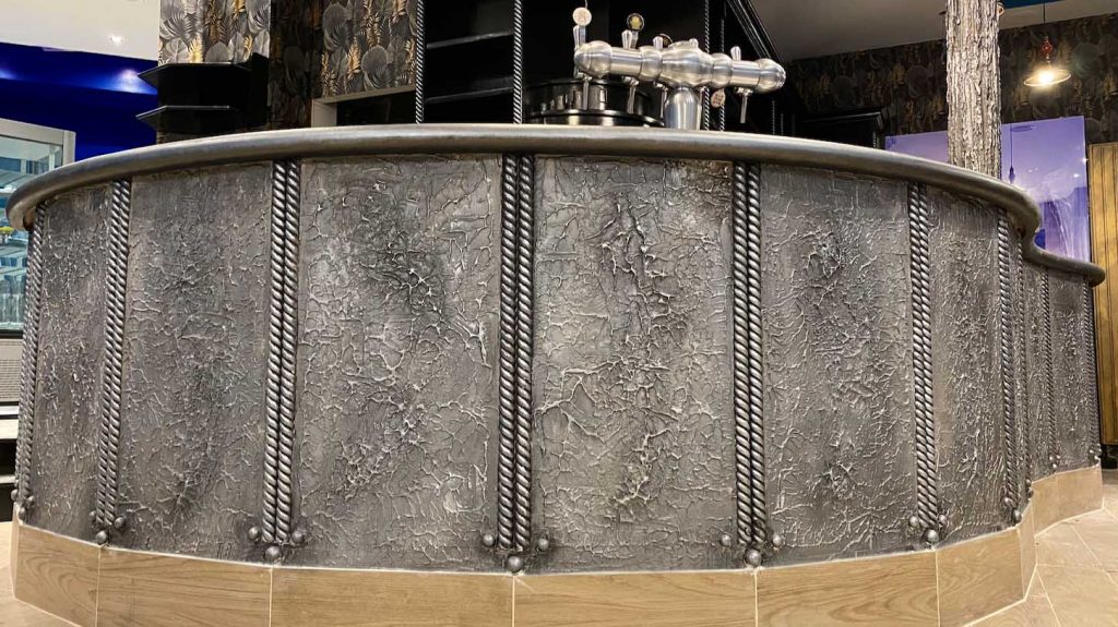 On peut choisir un métal en trompe l’oeil complètement lissé, ou au contraire plein de reliefs oxydés.
