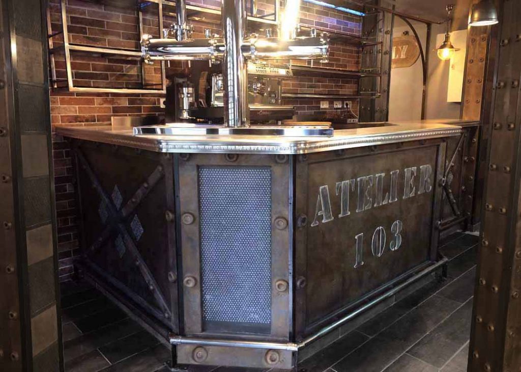 Un peintre décorateur à la réalisation pour réaliser des Enseignes professionnelles au cachet style industriel et Eiffel.