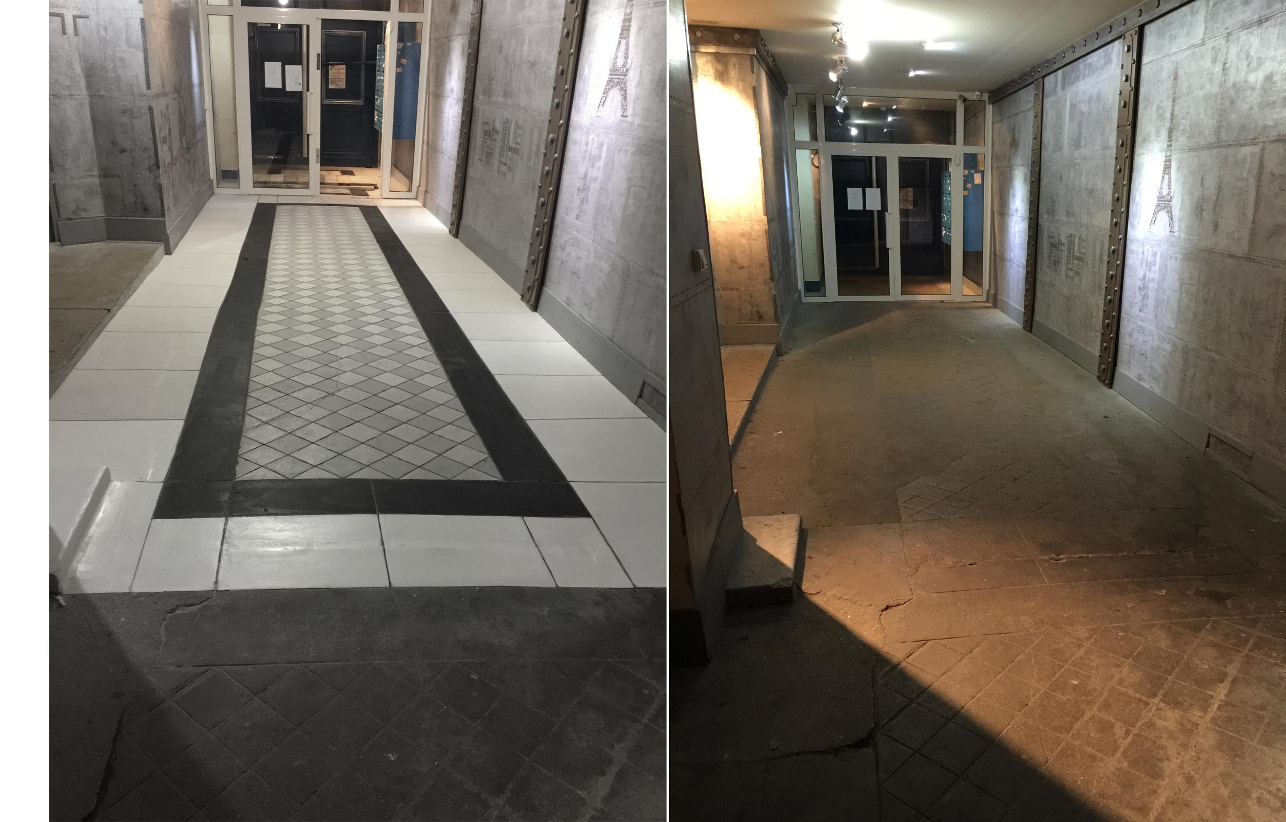 sol-avant-apres2 Publié le 30 mars 2017 à 2500 × 1599 dans sol-avant-apres2 Sol avant après et carrelage en trompe l’oeil Avant Après juste pour le sol carrelage trompe l’oeil et murs métal rivetés